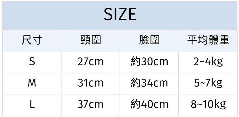 若頸圍超過29cm的毛孩建議拿L(臉下圍抽繩可以調節)
