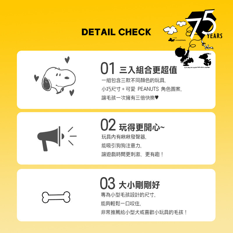 Snoppy|75周年迷你發聲啃咬玩具組
